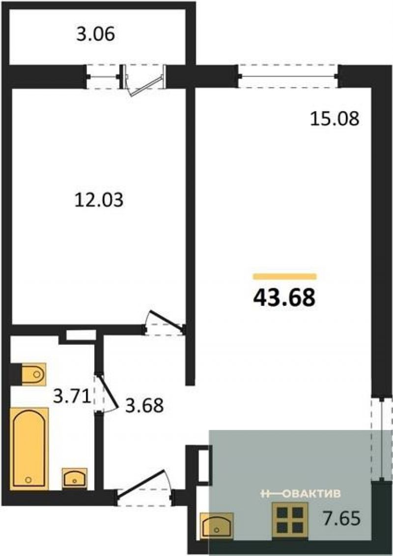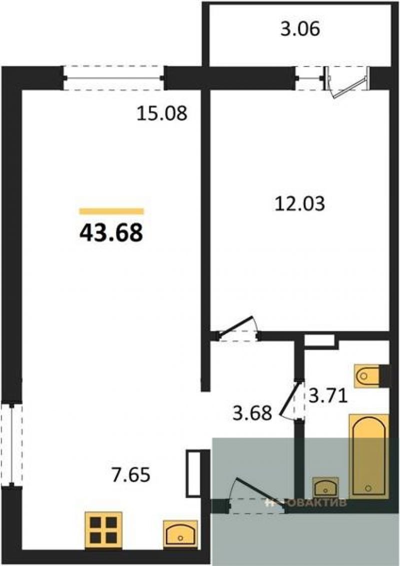 Расcчитать ипотеку№162 2-к.квартира, 43.68 м², 12 эт.