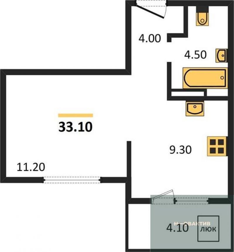 - Общая площадь 33.1 м²