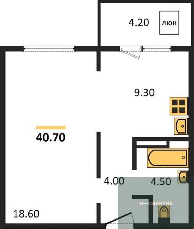 - Общая площадь 40.7 м²