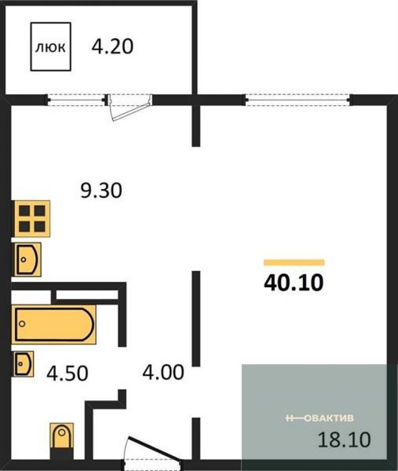 - Общая площадь 40.1 м²