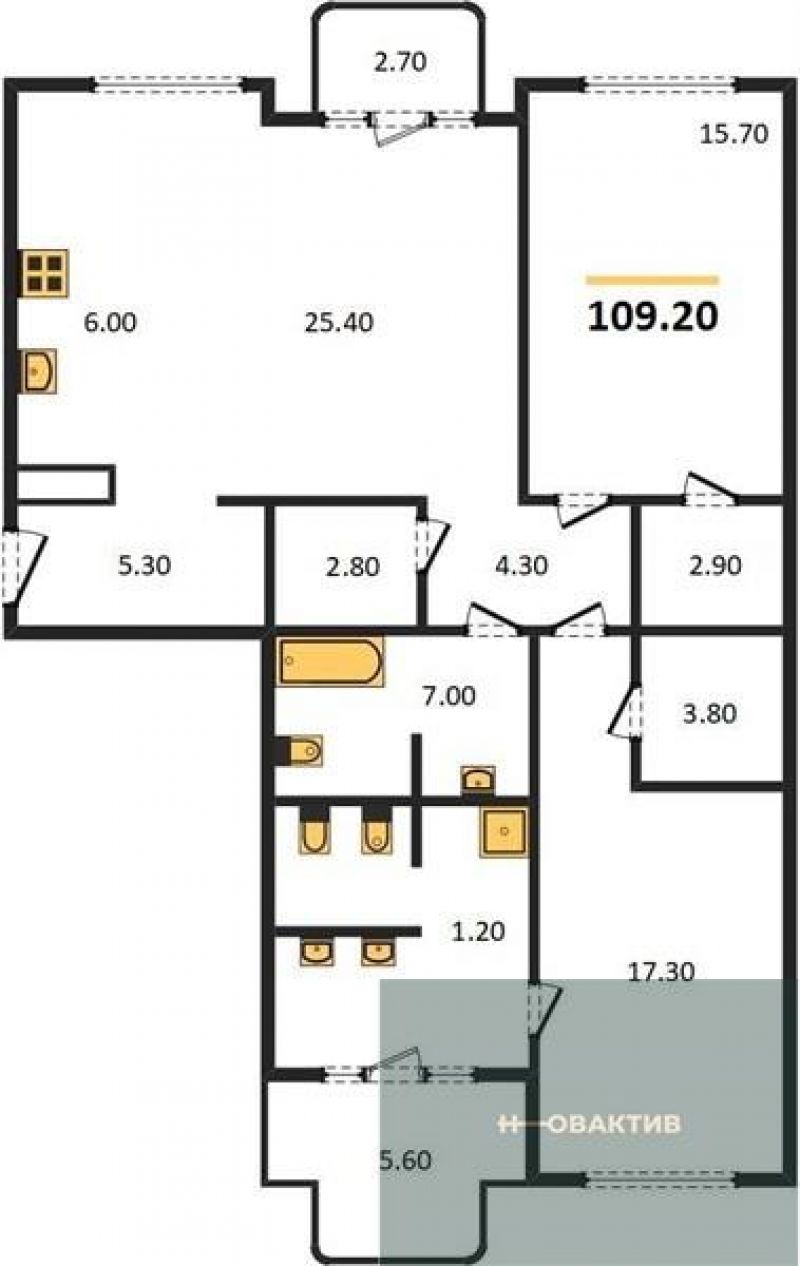 №5 2-к.квартира, 109.2 м², 3 эт.