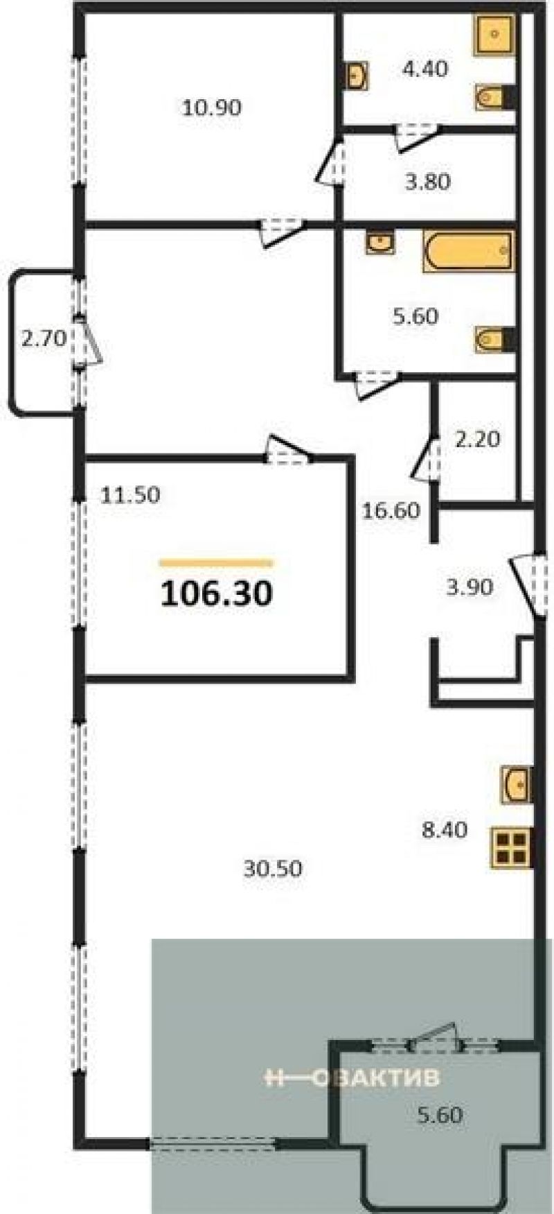 Расcчитать ипотеку№11 2-к.квартира, 106.3 м², 4 эт.
