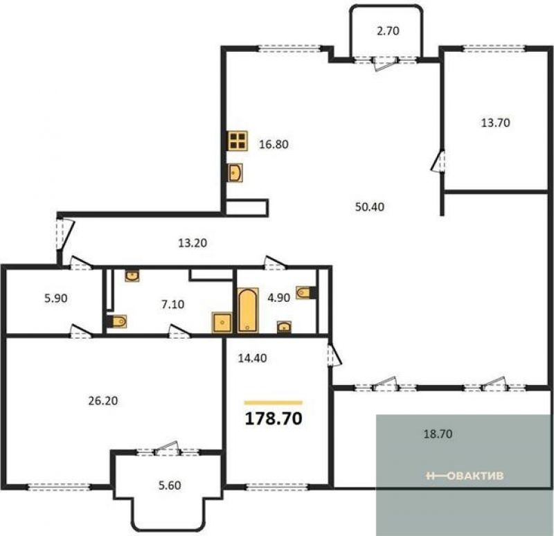 Расcчитать ипотеку№21 2-к.квартира, 178.7 м², 7 эт.