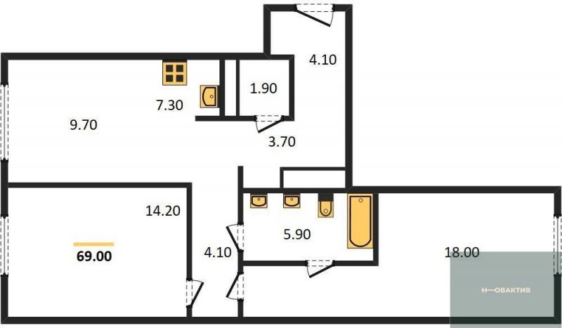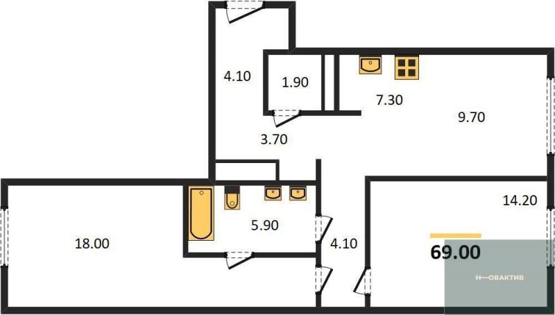 Расcчитать ипотеку№173 2-к.квартира, 69 м², 9 эт.