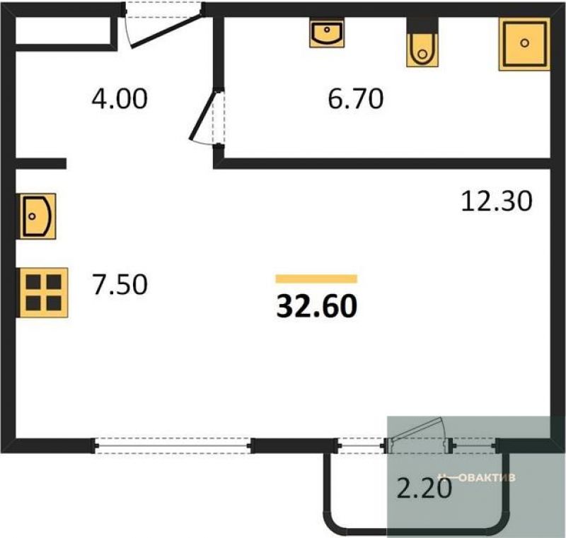 Расcчитать ипотеку№164 Студия, 32.6 м², 7 эт.