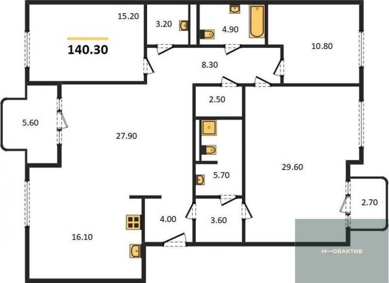 Расcчитать ипотеку№217 3-к.квартира, 140.3 м², 3 эт.