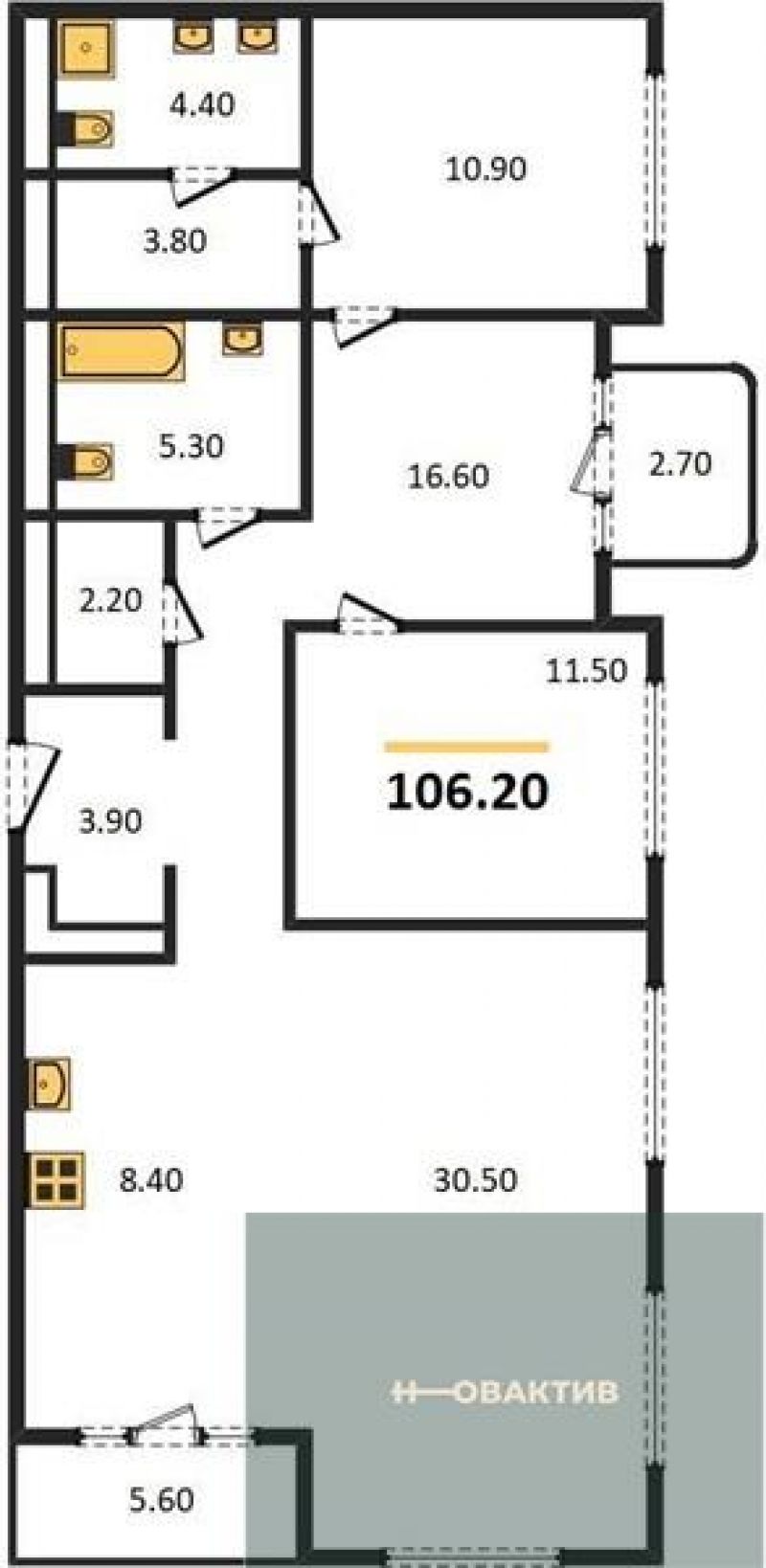 Расcчитать ипотеку№226 2-к.квартира, 106.2 м², 5 эт.