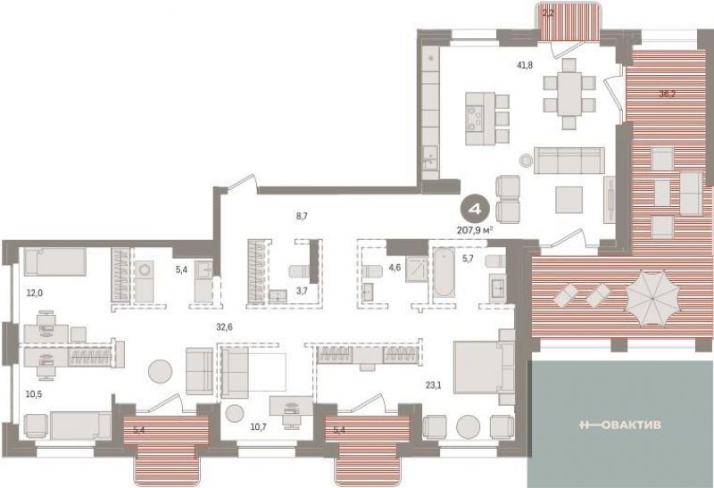 Расcчитать ипотеку№24 4-к.квартира, 207.9 м², 8 эт.