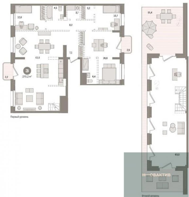 Квартира: 3 к 270,20 кв.м., 9 этаж в комплексе На Декабристов, 2 очередь, корп.6-2, сдача: 3кв. , этажей: 11, адрес Новосибирск г., Зыряновская ул., , Застройщик: Брусника. Квартал находится в деловой части Новосибирска в границах улиц Сакко и Ванцетти, 9 Ноября и Зыряновской. Вокруг квартала расположены административные здания, офисы банков и крупных компаний, высшие учебные заведения. Район с удобной транспортной инфраструктурой: станции метро «Октябрьская» и «Речной вокзал», остановка электропоезда и несколько центральных городских автомагистралей, по которым можно добраться до любого района Новосибирска. В 500 метрах – городская набережная и два парка, где можно гулять или делать пробежки. В районе уже сформированная инфраструктура: рядом расположены крупные торговые центры, три детских сада, две школы и медицинские учреждения. На первых этажах расположены полезные сервисы: салон красоты, кондитерская, кофейня, продуктовый магазин, детский центр и другие. Зелёный газон находится в окружении городского сада. Двор башни организован как открытое зелёное пространство на кровле паркинга. Он предназначен для отдыха жителей, чтения на воздухе или активных игр. Это открытая зона, засеянная газоном в окружении городского сада. Взрослые деревья (липа и ирга) и живая изгородь создают теневые участки и защищают от солнца. Летние помещения кафе расположены по соседству. Ландшафтный дизайн разрабатывает швейцарское бюро. Парадная с местами отдыха и ожидания. Интерьер подъезда выполнен в стиле современной классики. Нейтральные цвета, приятные фактуры тканей и натуральные материалы в отделке делают дизайн сдержанным и камерным. Для поддержания стиля и создания атмосферы парадной здесь размещены предметы искусства: картины и статуи. В холле первого этажа предусмотрена мягкая лаундж-зона, где можно подождать курьера или дождаться такси. Почтовые ящики утоплены в стену и не мешают пройти. Можно остановиться и спокойно забрать почту. В холле и на этажах выполнена навигация, которая поможет легко сориентироваться. Чтобы быстро подняться на этаж установлены скоростные лифты, которые опускаются прямо в паркинг. Предусмотрены помещения для хранения велосипедов и колясок. Летние помещения со сдвижным панорамным остеклением. У некоторых квартир есть собственные террасы. Они расширяют жилое пространство и дают возможность разнообразить досуг. Летом здесь можно организовать место для пикника, игр или отдыха. Зимой на террасах ставят новогодние елки и делают горки, дети лепят снеговиков и играют в снежки. На террасу выходят большие окна в пол, что даёт квартире больше естественного света. Пентхаусы, просторные квартиры со свободной планировкой – это особые квартиры большой площади, которые расположены на последнем этаже дома. Здесь просторные кухни-столовые и гостиные с панорамными окнами, несколько просторных спален, открытые террасы. Площади таких квартир позволили архитекторам дополнить жилье дополнительными функциями – рабочим кабинетом, отдельными душевыми комнатами, постирочными. У пентхауса на 23 этаже есть собственный вход: можно выйти из лифта прямо в квартиру, не пересекаясь с другими жителями дома. Квартиры с окном в ванной – новый формат планировочных решений. Ванная перестаёт быть скучным бытовым сервисом и приобретает функции 
