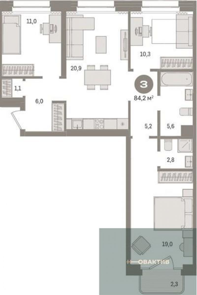 Квартира: 3 к 84,20 кв.м., 4 этаж в комплексе На Декабристов, 2 очередь, корп.6-2, сдача: 3кв. , этажей: 11, адрес Новосибирск г., Зыряновская ул., , Застройщик: Брусника. Квартал находится в деловой части Новосибирска в границах улиц Сакко и Ванцетти, 9 Ноября и Зыряновской. Вокруг квартала расположены административные здания, офисы банков и крупных компаний, высшие учебные заведения. Район с удобной транспортной инфраструктурой: станции метро «Октябрьская» и «Речной вокзал», остановка электропоезда и несколько центральных городских автомагистралей, по которым можно добраться до любого района Новосибирска. В 500 метрах – городская набережная и два парка, где можно гулять или делать пробежки. В районе уже сформированная инфраструктура: рядом расположены крупные торговые центры, три детских сада, две школы и медицинские учреждения. На первых этажах расположены полезные сервисы: салон красоты, кондитерская, кофейня, продуктовый магазин, детский центр и другие. Зелёный газон находится в окружении городского сада. Двор башни организован как открытое зелёное пространство на кровле паркинга. Он предназначен для отдыха жителей, чтения на воздухе или активных игр. Это открытая зона, засеянная газоном в окружении городского сада. Взрослые деревья (липа и ирга) и живая изгородь создают теневые участки и защищают от солнца. Летние помещения кафе расположены по соседству. Ландшафтный дизайн разрабатывает швейцарское бюро. Парадная с местами отдыха и ожидания. Интерьер подъезда выполнен в стиле современной классики. Нейтральные цвета, приятные фактуры тканей и натуральные материалы в отделке делают дизайн сдержанным и камерным. Для поддержания стиля и создания атмосферы парадной здесь размещены предметы искусства: картины и статуи. В холле первого этажа предусмотрена мягкая лаундж-зона, где можно подождать курьера или дождаться такси. Почтовые ящики утоплены в стену и не мешают пройти. Можно остановиться и спокойно забрать почту. В холле и на этажах выполнена навигация, которая поможет легко сориентироваться. Чтобы быстро подняться на этаж установлены скоростные лифты, которые опускаются прямо в паркинг. Предусмотрены помещения для хранения велосипедов и колясок. Летние помещения со сдвижным панорамным остеклением. У некоторых квартир есть собственные террасы. Они расширяют жилое пространство и дают возможность разнообразить досуг. Летом здесь можно организовать место для пикника, игр или отдыха. Зимой на террасах ставят новогодние елки и делают горки, дети лепят снеговиков и играют в снежки. На террасу выходят большие окна в пол, что даёт квартире больше естественного света. Пентхаусы, просторные квартиры со свободной планировкой – это особые квартиры большой площади, которые расположены на последнем этаже дома. Здесь просторные кухни-столовые и гостиные с панорамными окнами, несколько просторных спален, открытые террасы. Площади таких квартир позволили архитекторам дополнить жилье дополнительными функциями – рабочим кабинетом, отдельными душевыми комнатами, постирочными. У пентхауса на 23 этаже есть собственный вход: можно выйти из лифта прямо в квартиру, не пересекаясь с другими жителями дома. Квартиры с окном в ванной – новый формат планировочных решений. Ванная перестаёт быть скучным бытовым сервисом и приобретает функции о
