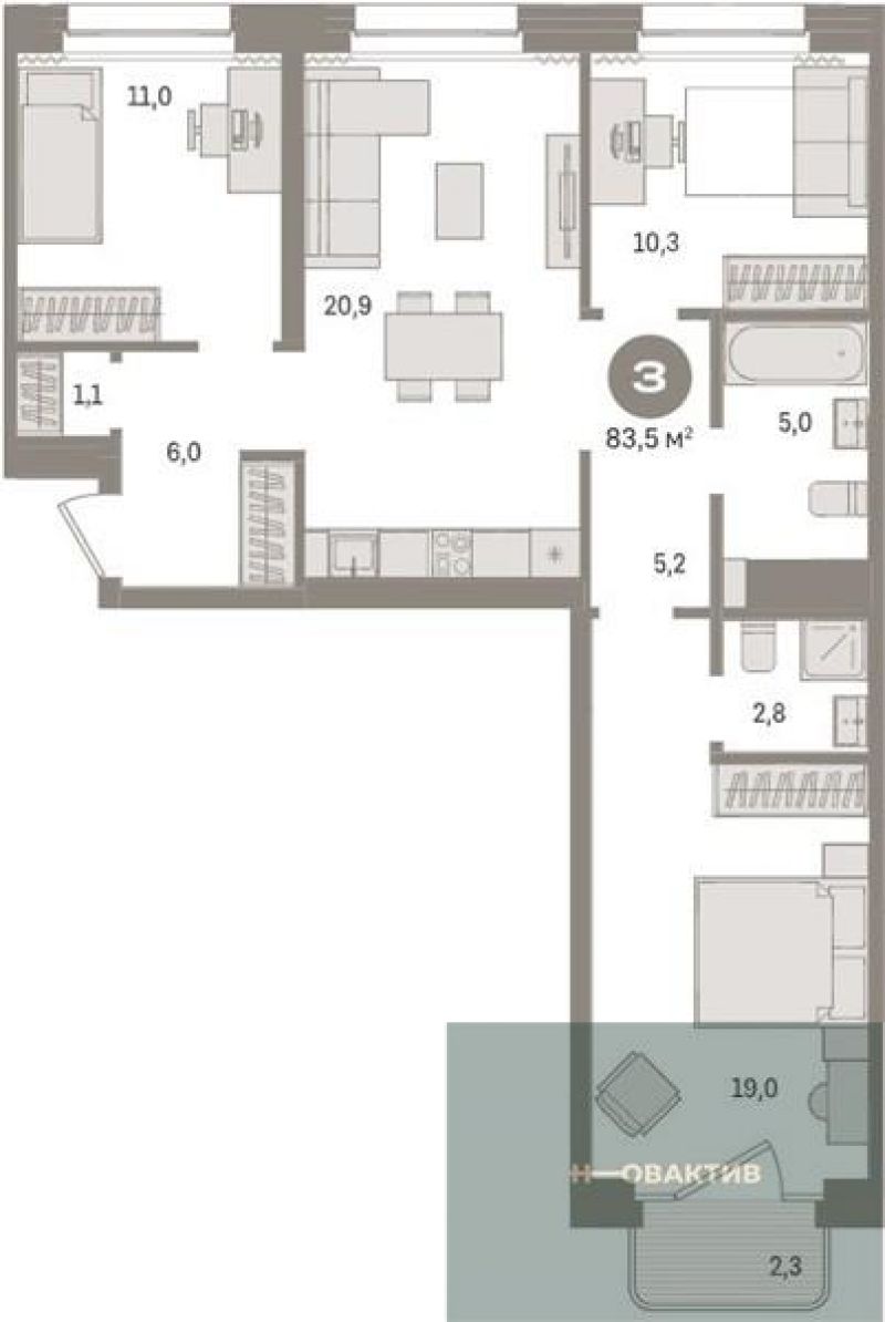 Расcчитать ипотеку№111 3-к.квартира, 83.5 м², 5 эт.