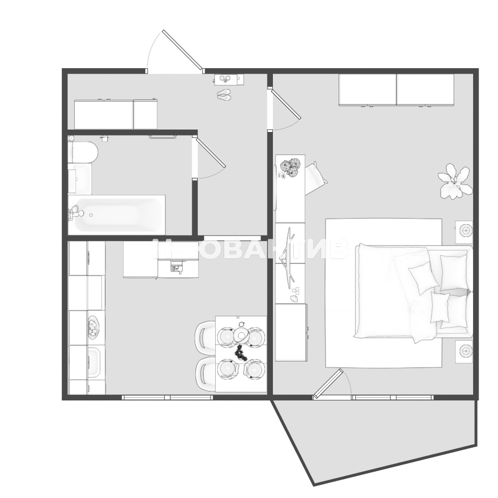 - в комнате угловой диван, шкаф для одежды, тумбочка, столик-раскладушка, журнальный столик, два кресла, телевизор, пылесос, утюг, гардина со шторами, люстра.