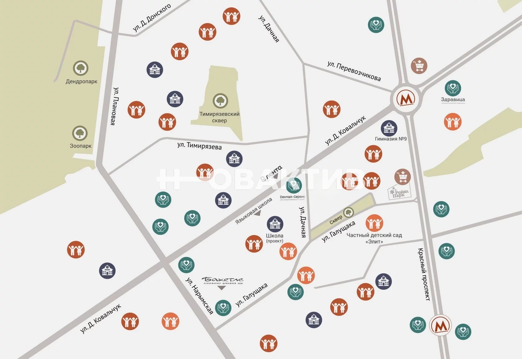 Рядом находятся Новосибирский зоопарк и дендропарк, Нарымский и Тимирязевский скверы.