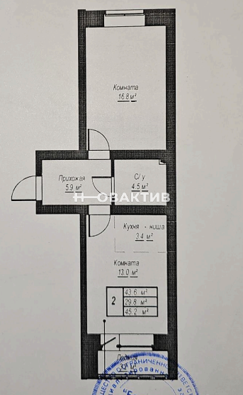 - Общая площадь45.2 м²
