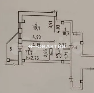 Общая площадь квартиры без учета лоджии составляет 46кв.м. Жилая площадь составляет 19.1кв.м. Кухня 11.7кв.м.