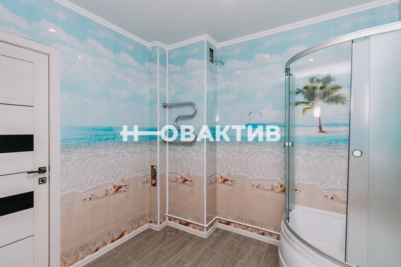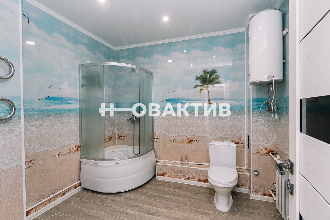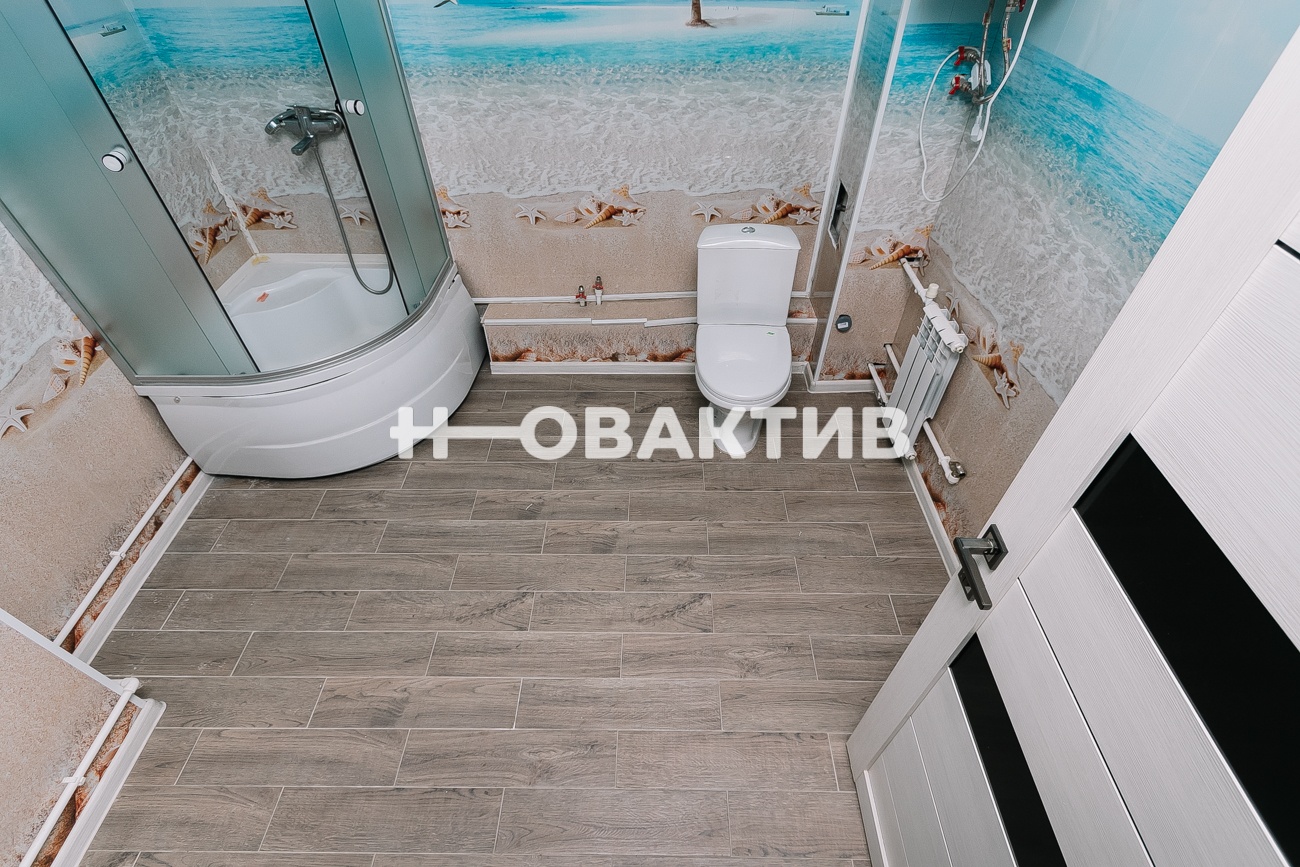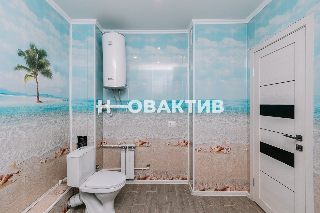 В санузле на стенах - пвх панели, на полу - напольная плитка, новым собственникам в качестве комплимента остается водонагреватель