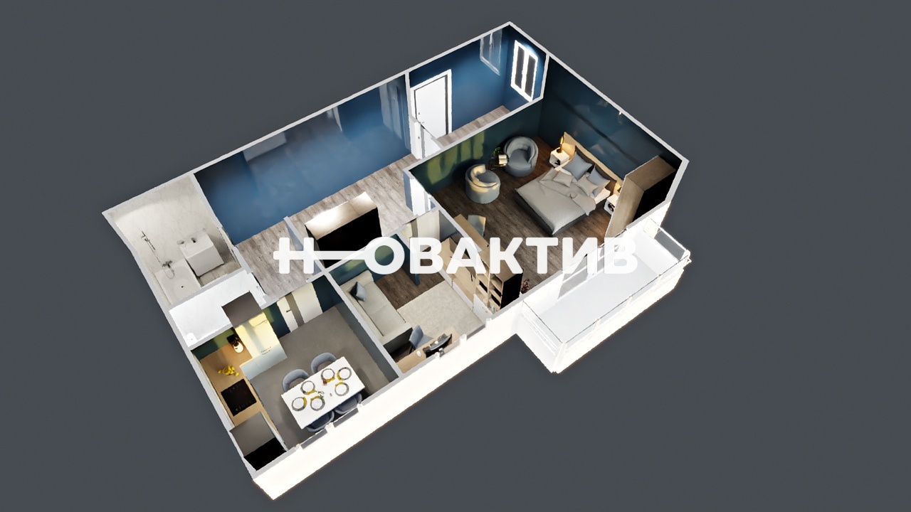 Общая площадь - 49.2 м2, жилая - 28 м2, кухня - 8 м2