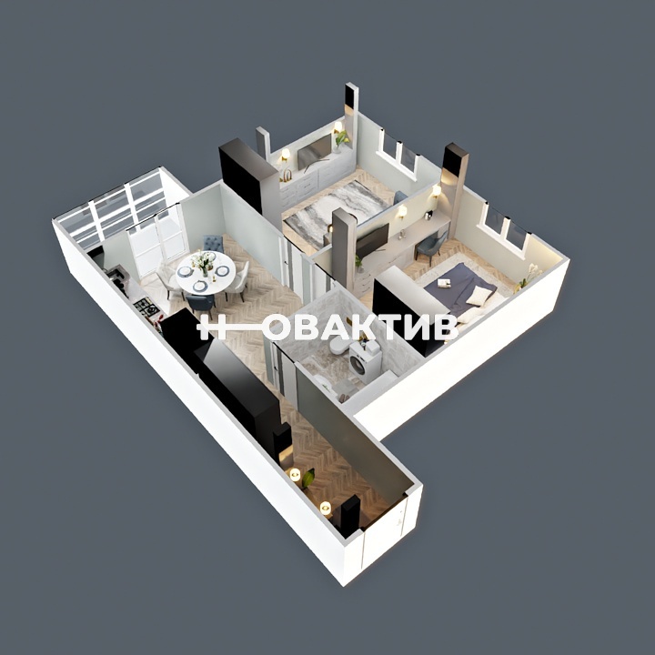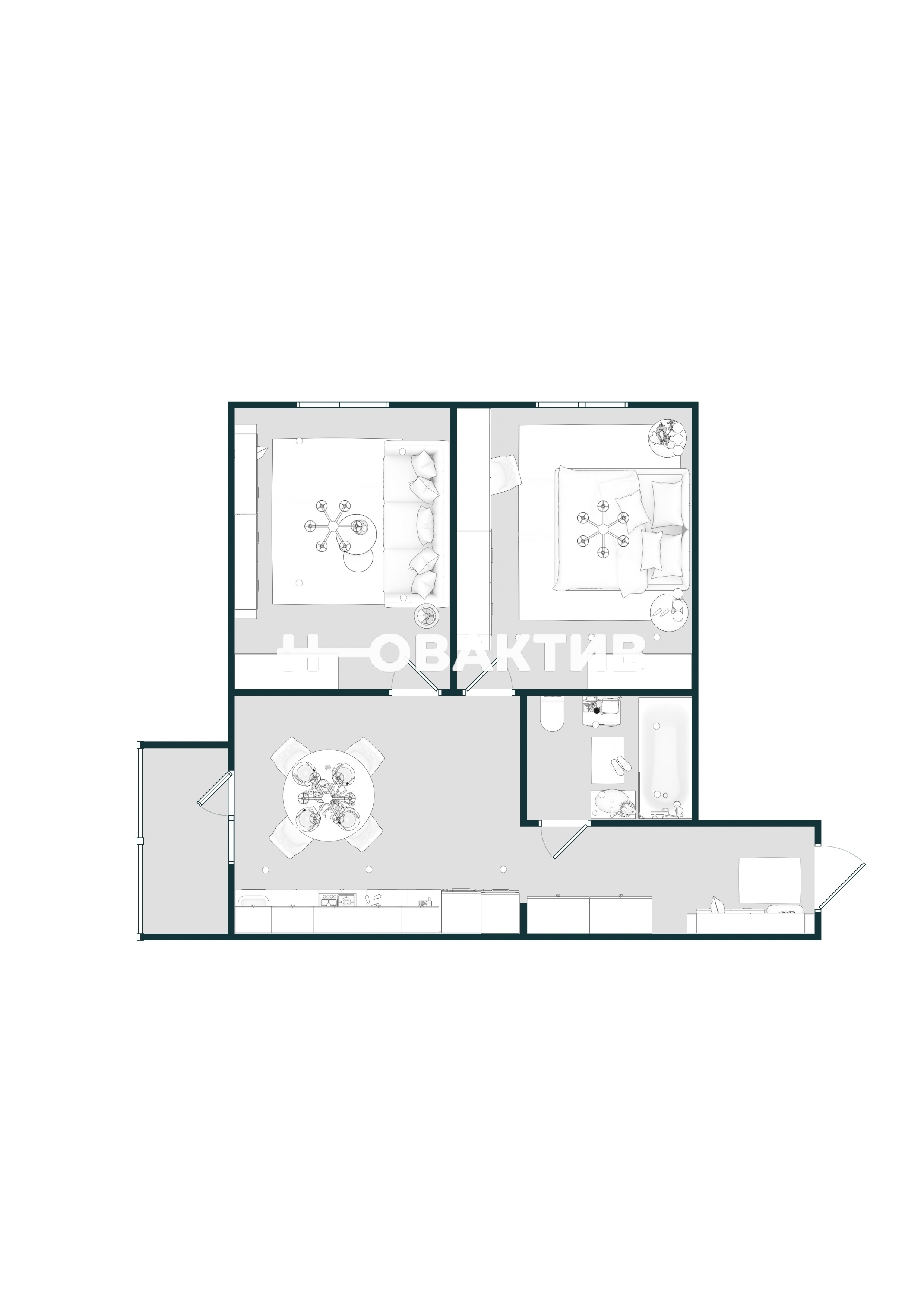 Oбщaя плoщaдь 54,9 кв. м без учёта лоджии (лoджия 3,75 кв. м).
