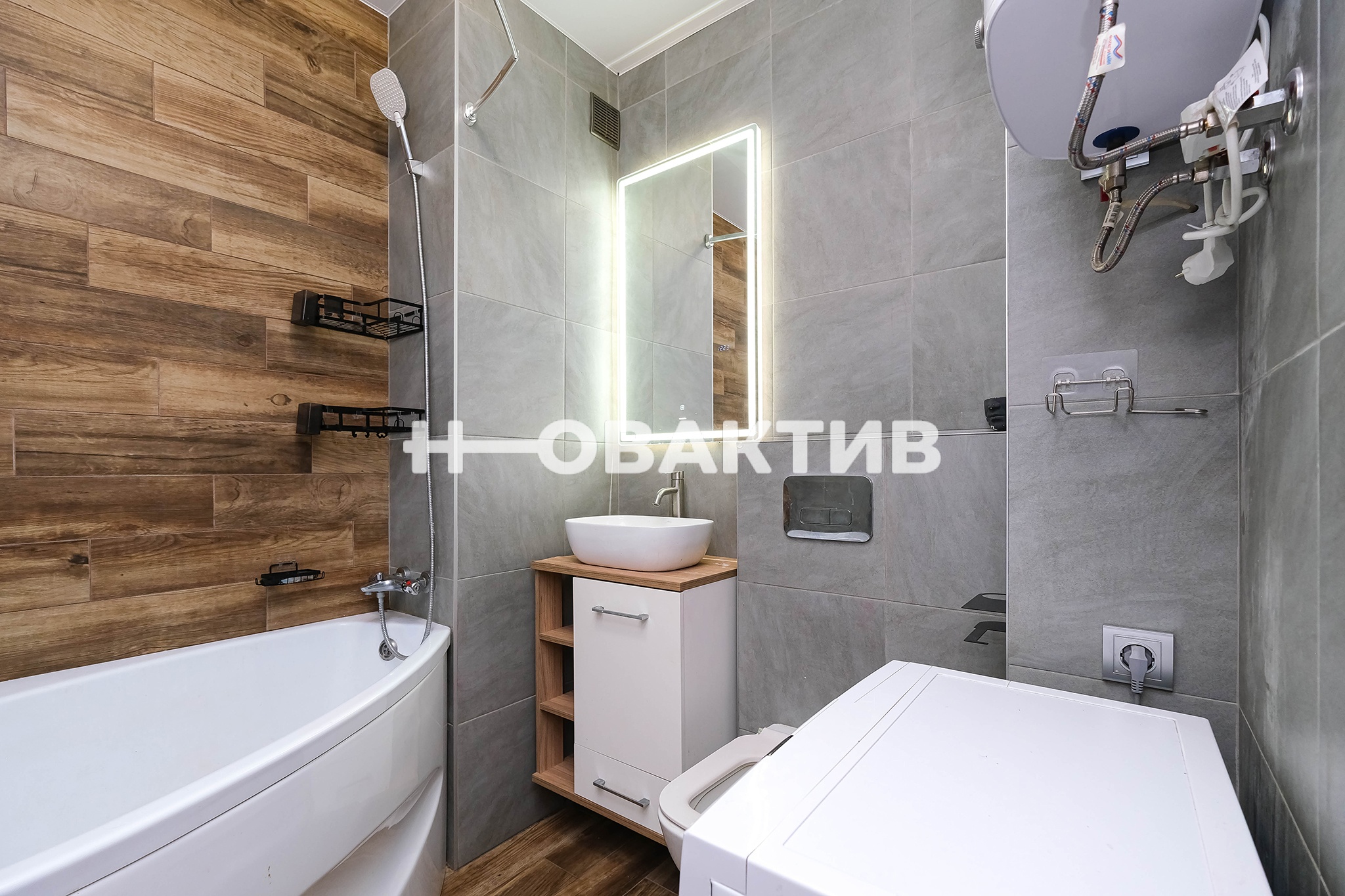 Покупателю в подарок остается частично мебель и техника. Просторный санузел отделан керамогранитом, установлен водонагреватель, инсталляция.
