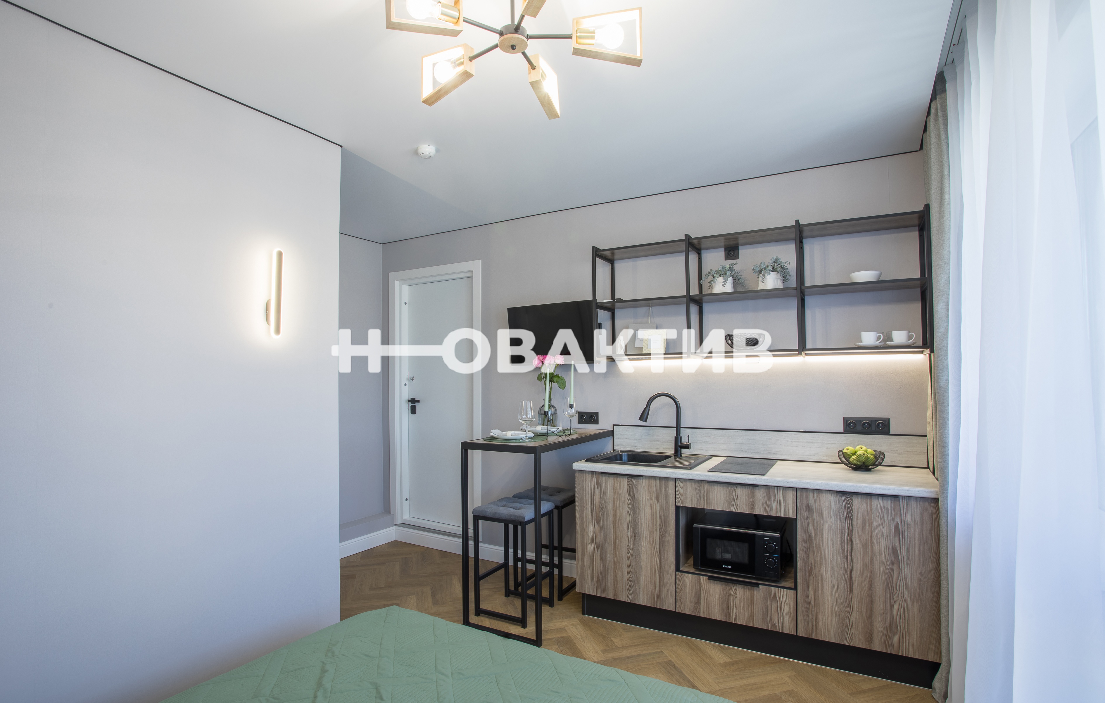 Общие входные двери оборудованы электронным кодовым замком, управление по вай-фай. В каждую студию установлены отдельные входные металлические двери.