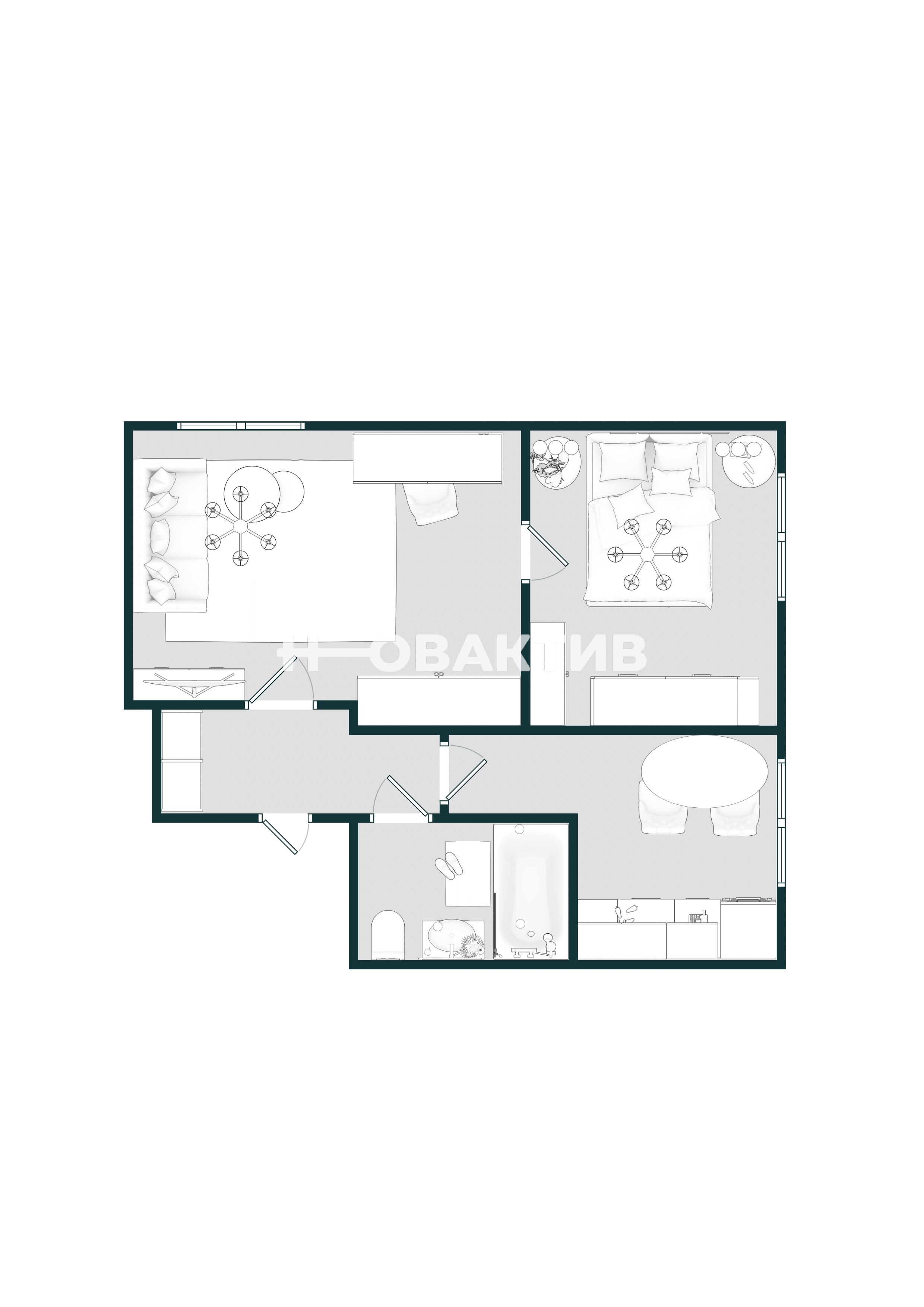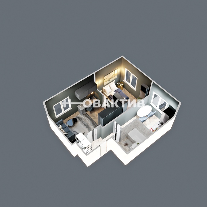 Общая площадь - 33.3 м2., жилая площадь -21.5 м2, кухня - 8.6 м2.