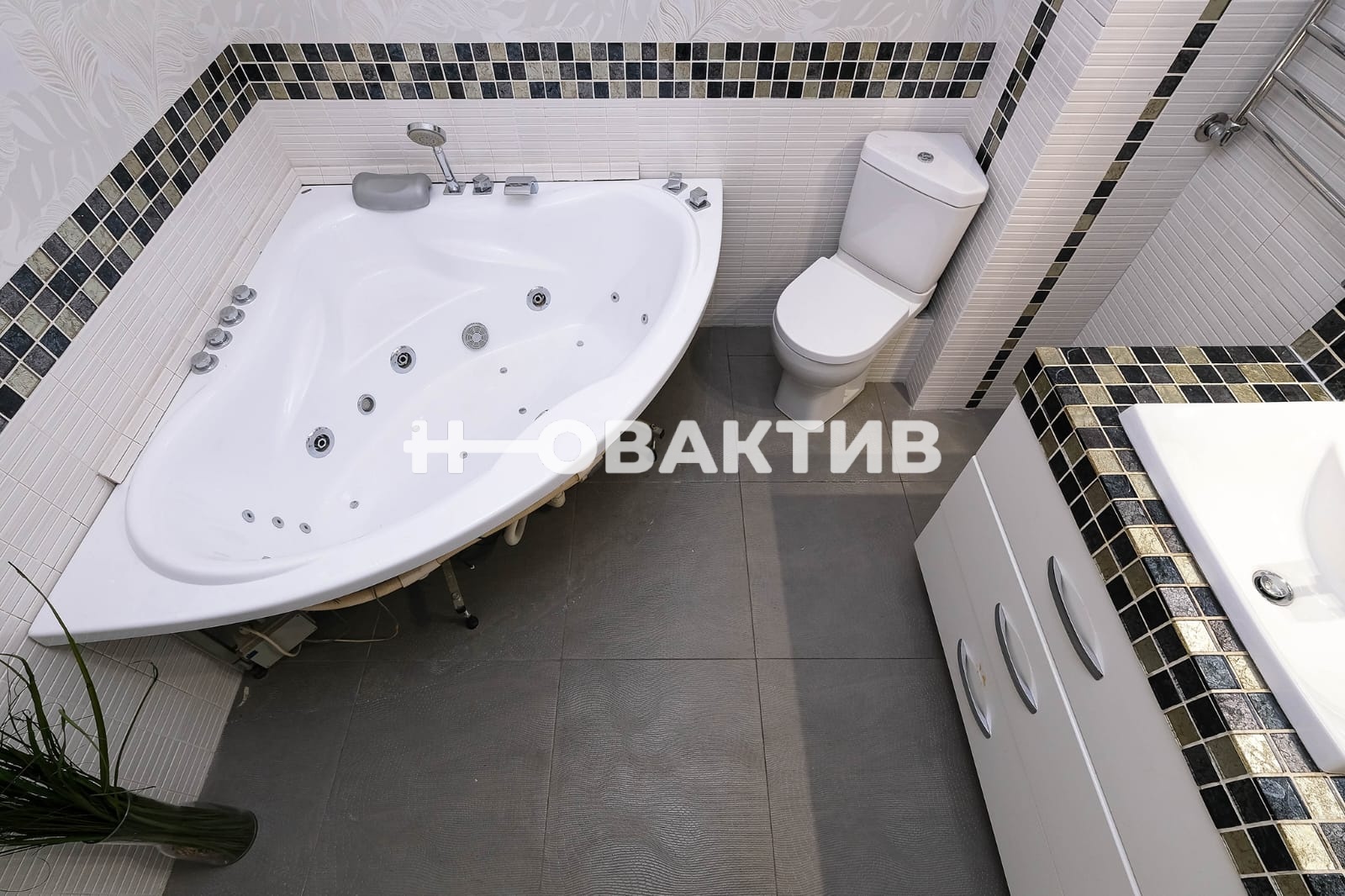· Ванная комната 5,1 кв.м идеально подходит для релаксации отдыха. В центре ее расположен джакузи, а над ним светятся кристаллы Сваровски, создающие уютное и расслабляющее освещение