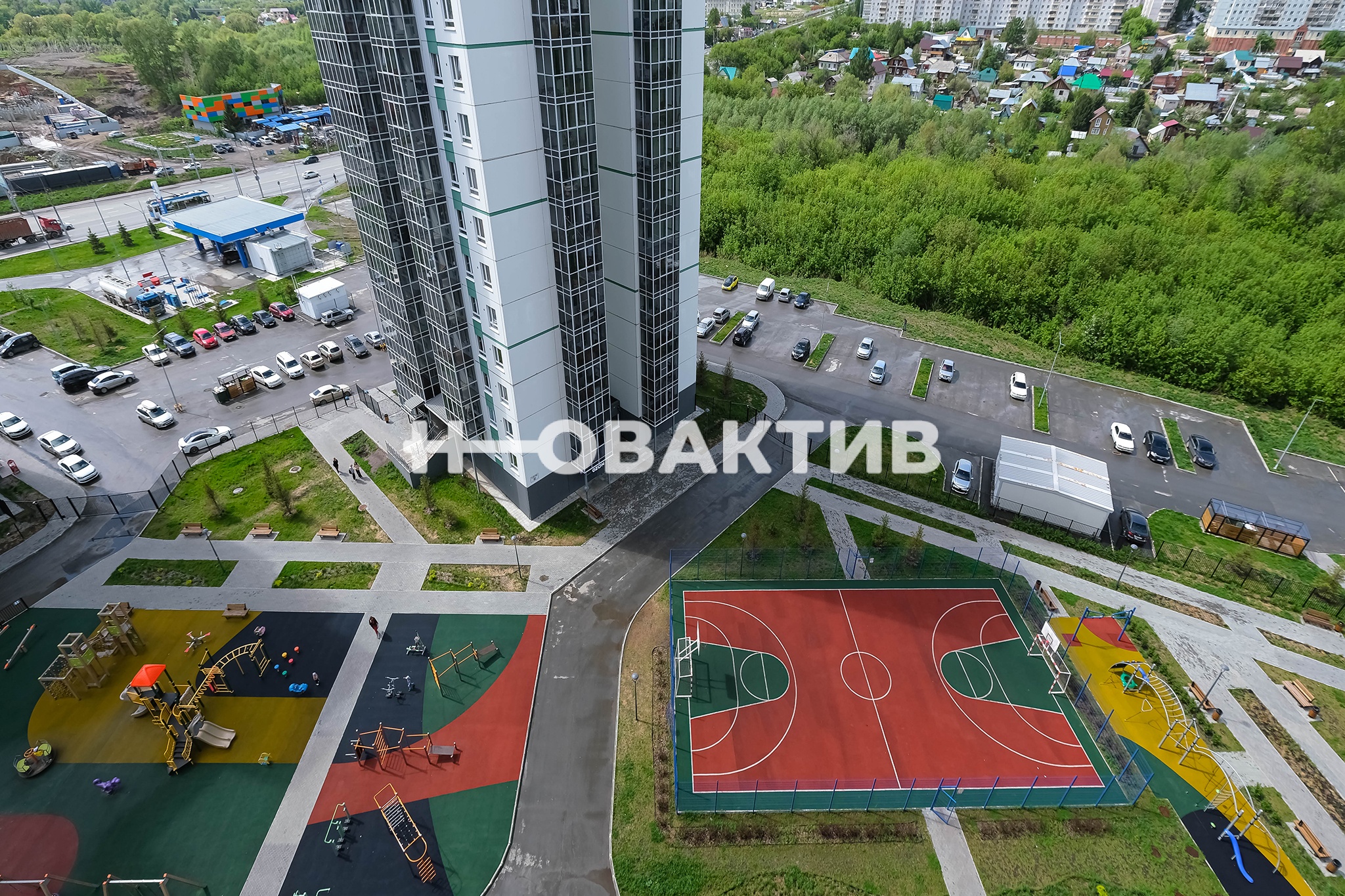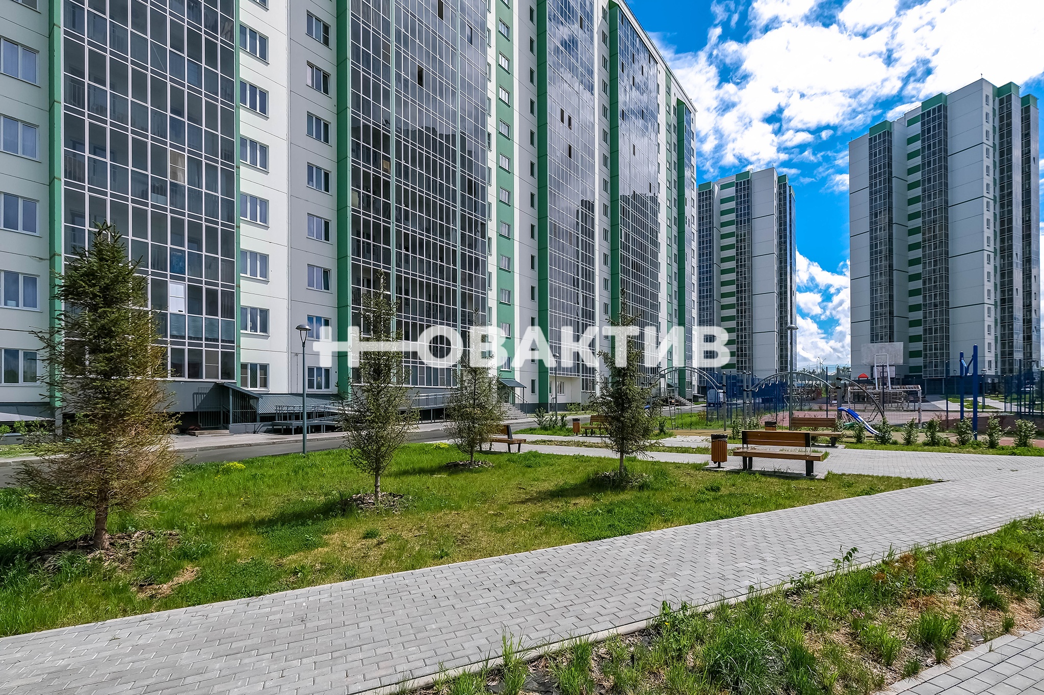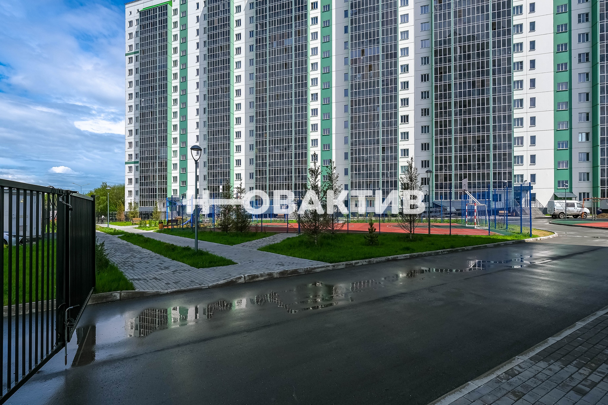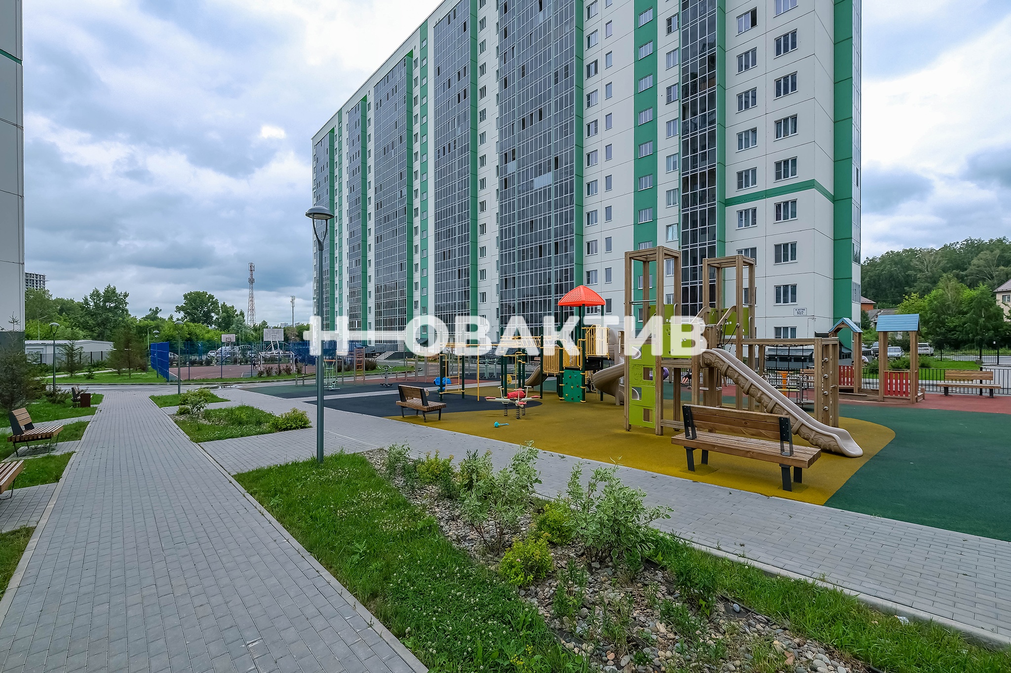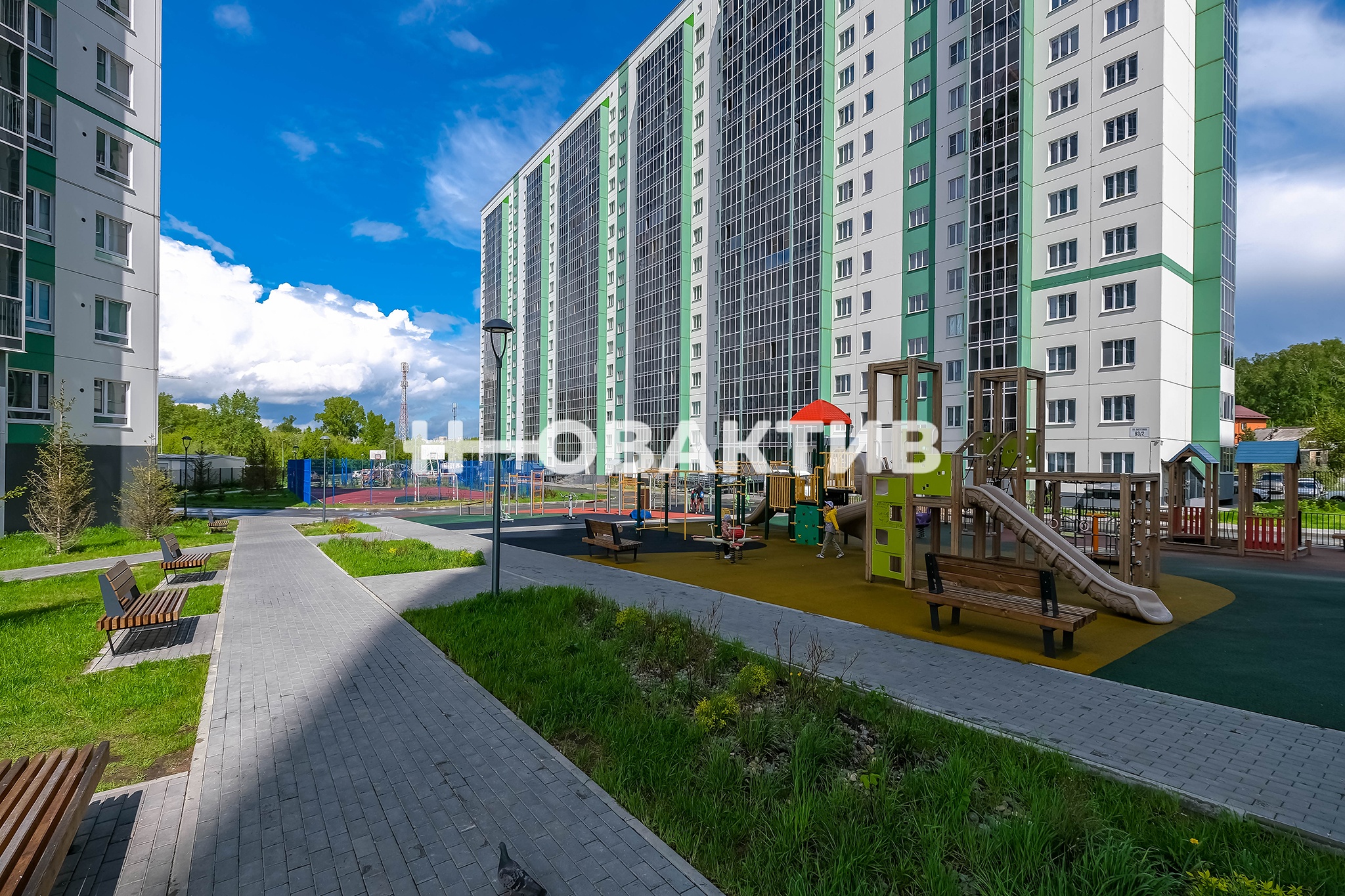 Двор оборудован благоустроенной современной закрытой площадкой, выполненной по концепции двор без машин: парковочные места отделены от зон отдыха и детской площадки, что дает возможность отпускать детей гулять без присмотра, ведь во двор могут попасть только жильцы, вся территория оборудована камерами и круглосуточной охраной.