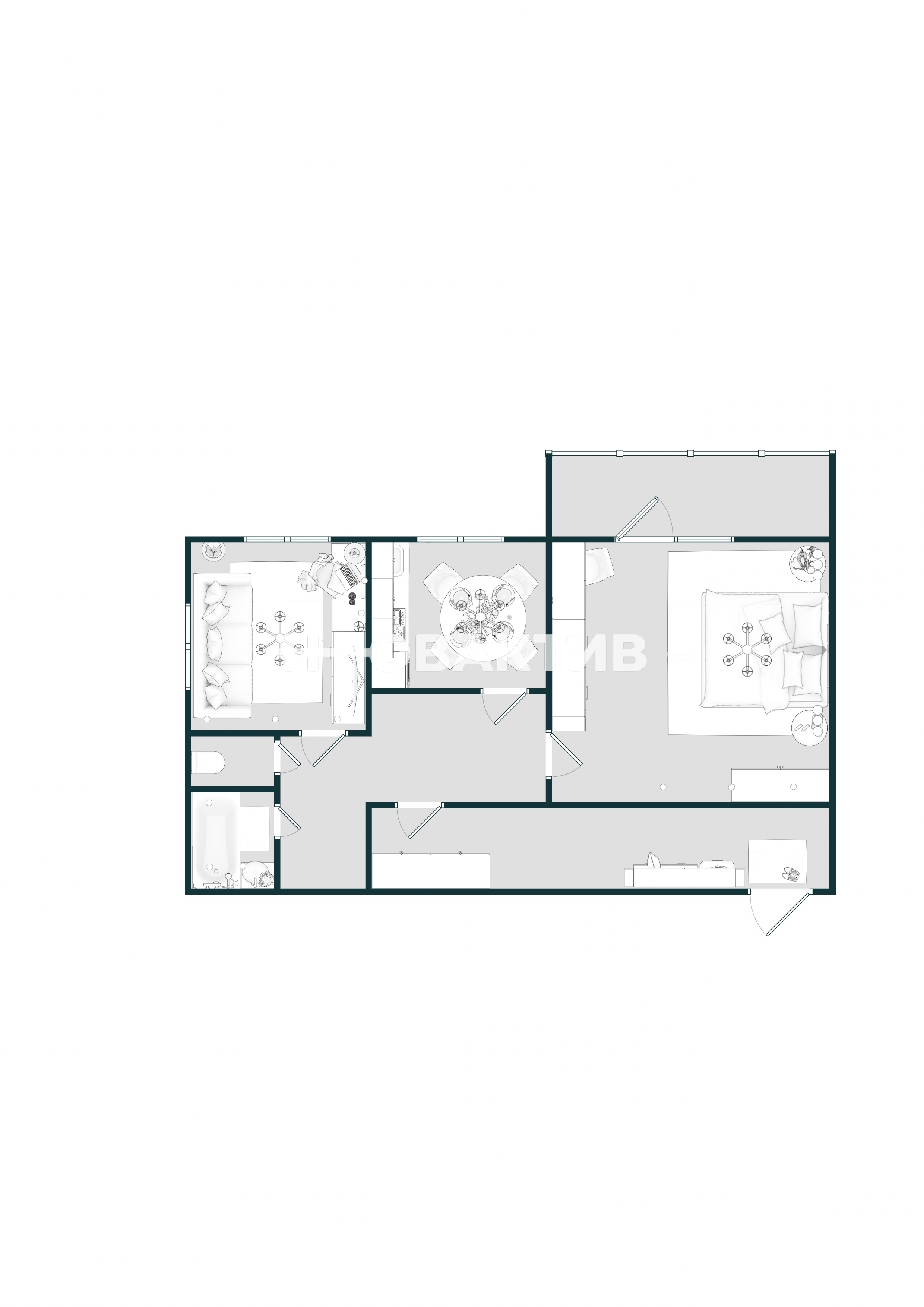 Изолированные комнаты, расположенные на две стороны от кухни, что обеспечивает тишину и уединение.