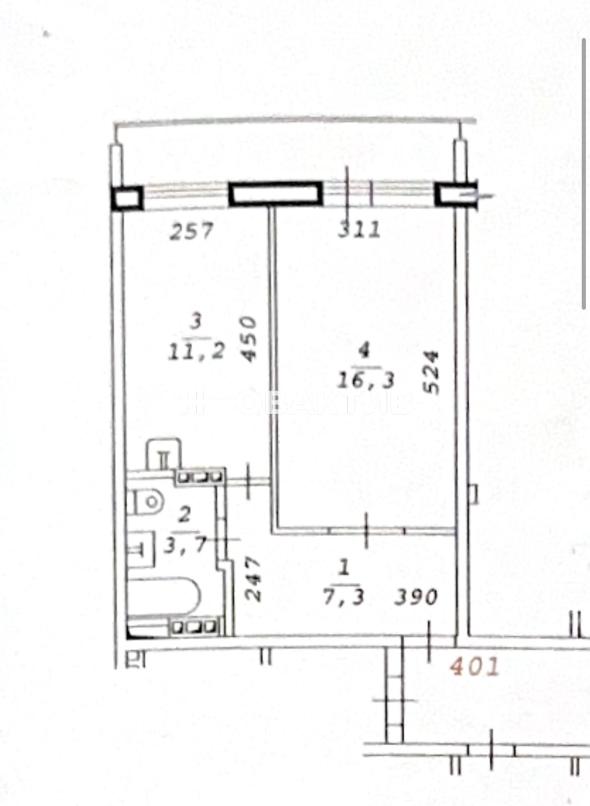 - Общая площадь:40.1 м²