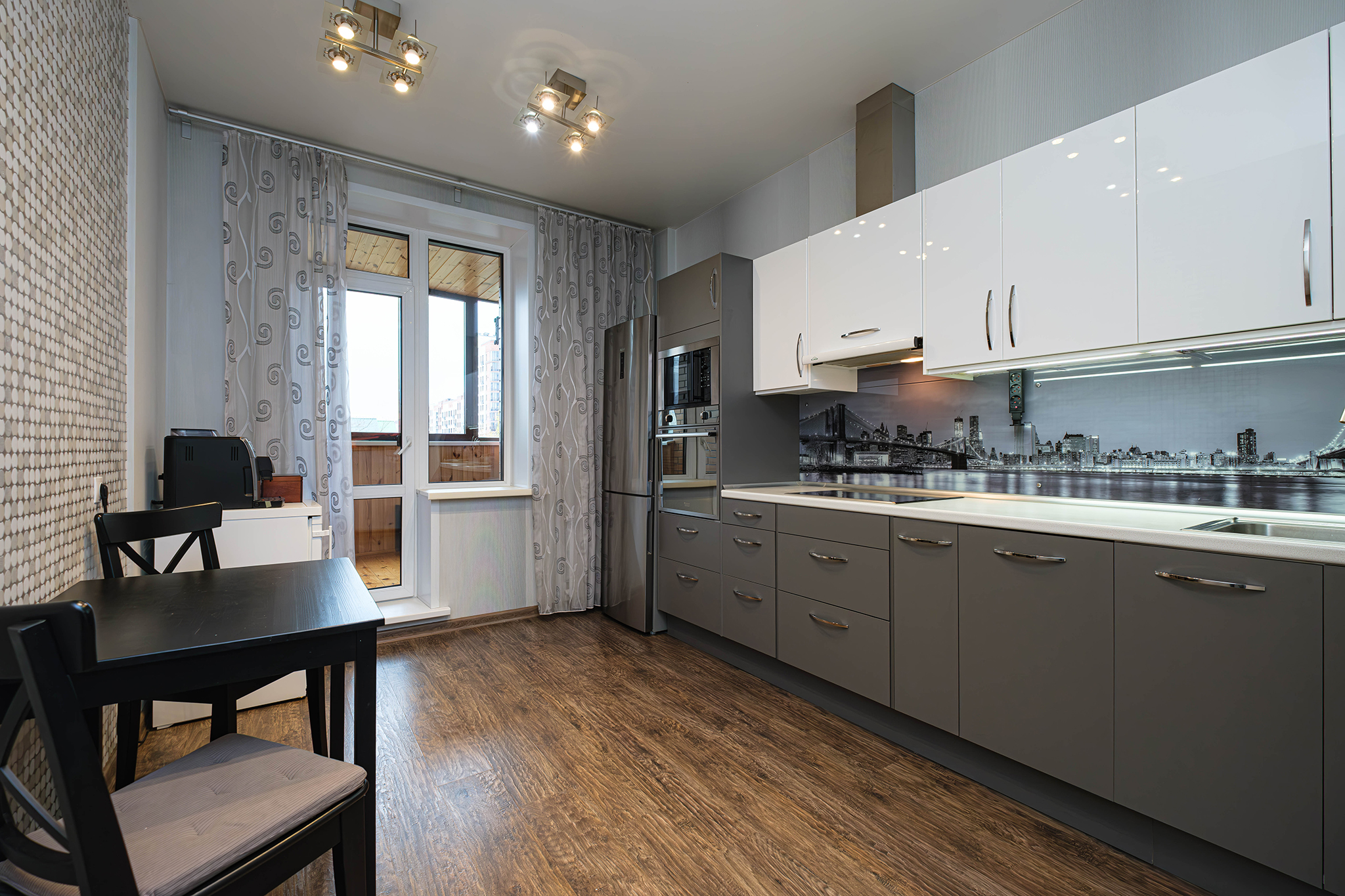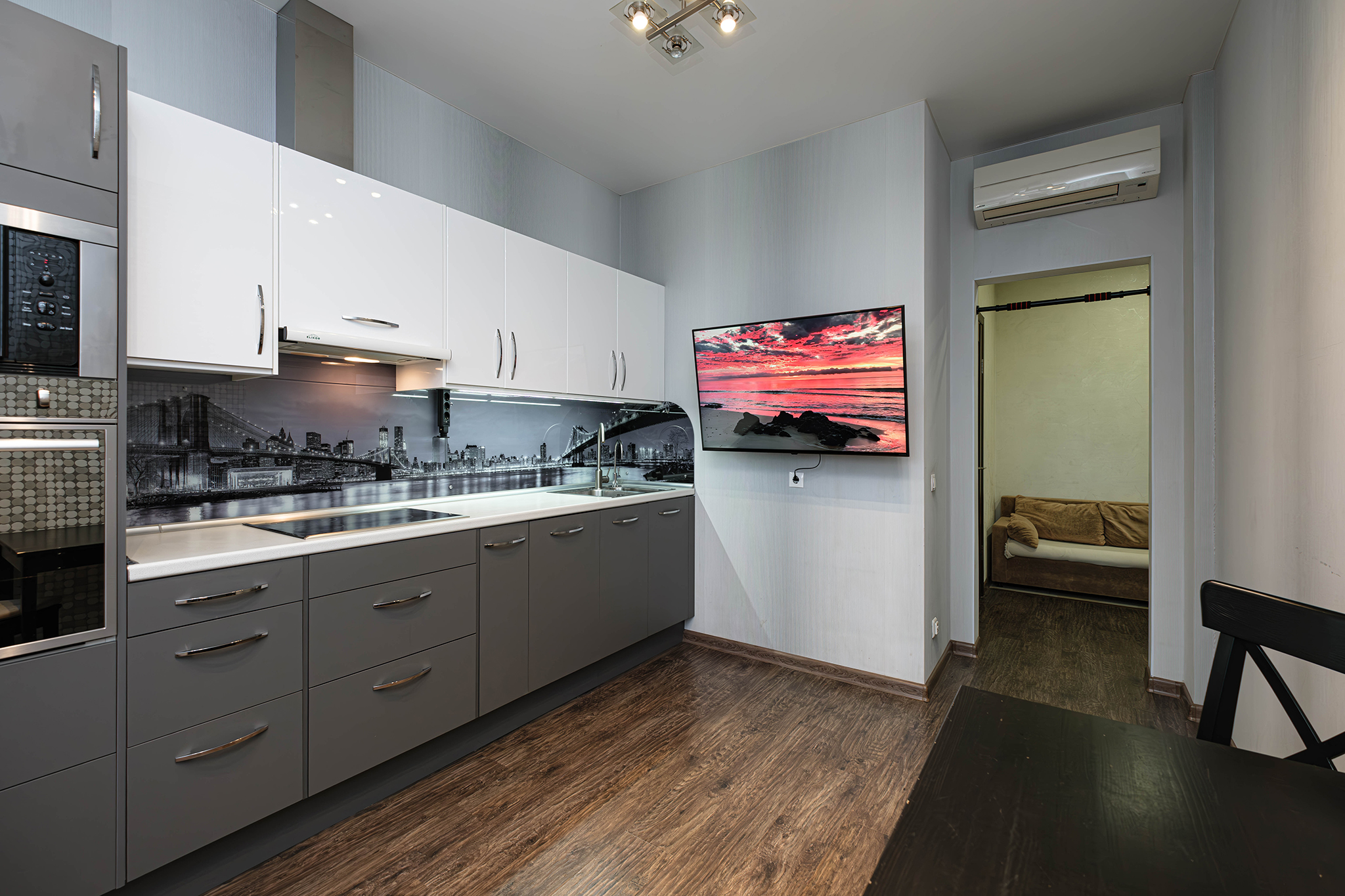 В квартире остается: кухонный гарнитур со встроенной техникой (варочная панель, духовой шкаф, микроволновая печь, вытяжка, посудомоечная машина), холодильник, стиральная машина, водонагреватель, кондиционеры, кровать