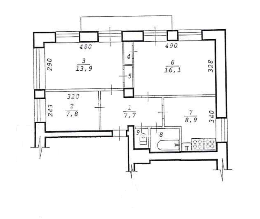 - Площадь кухни:7.2 м²