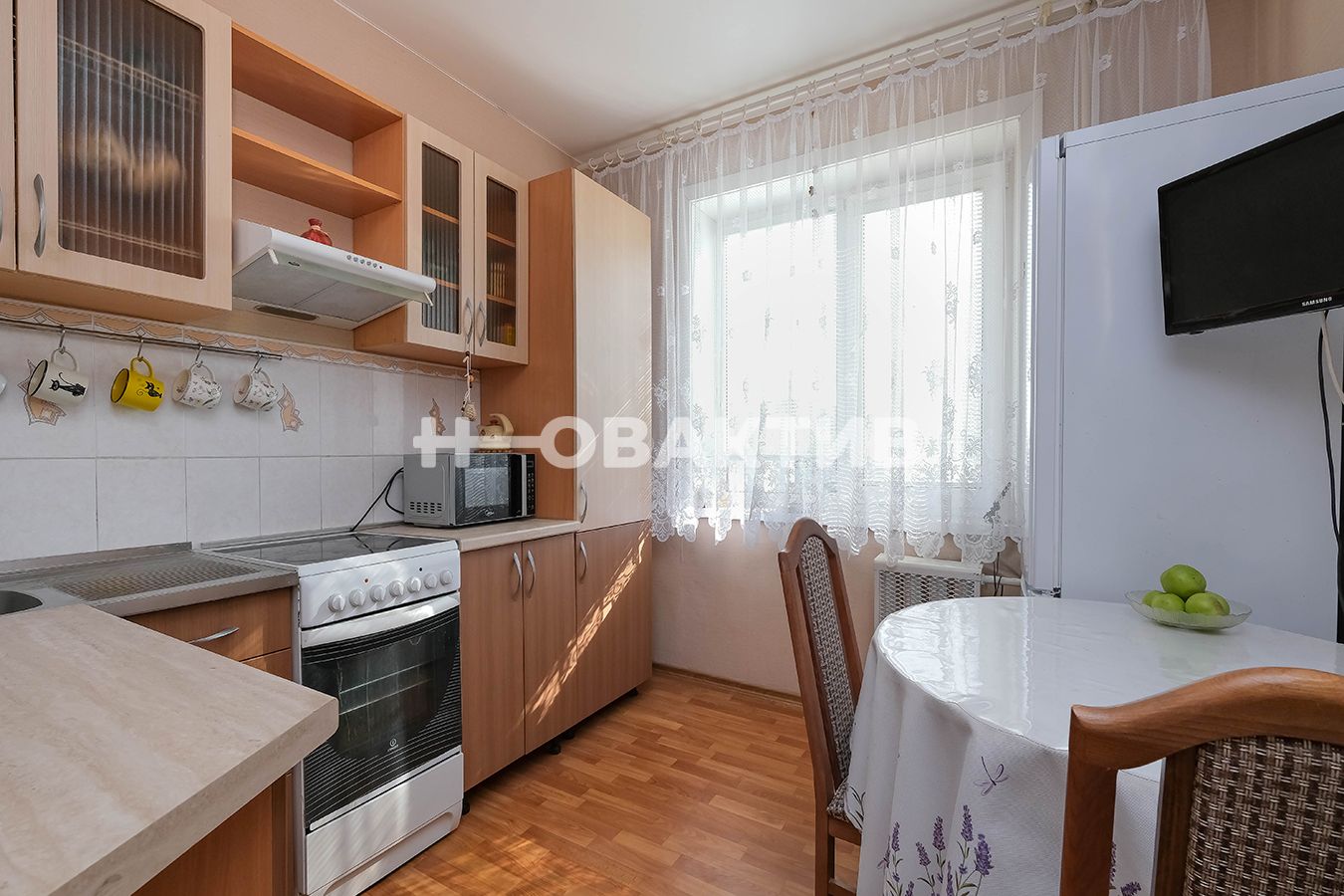 Новому собственнику остается вся мебель, кроме кухонного стола. Из техники остается электроплита
