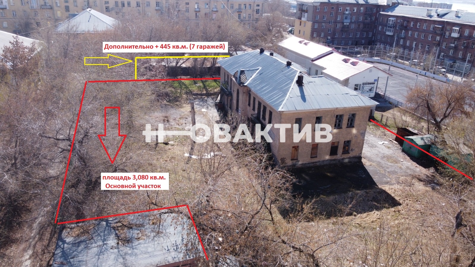 плюс 445 кв.м. соседний участок, семь гаражей (выкуп)