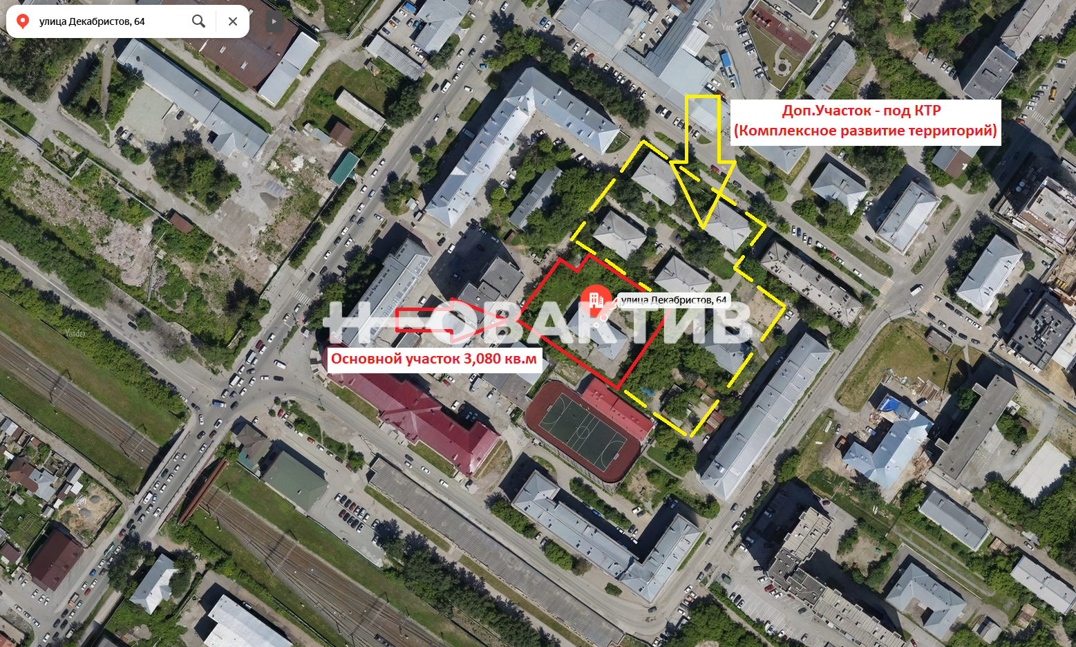Также Дополнительно можно зайти в программу застройки КТР Новосибирск (комплексное развитие территорий) и значительно расширить общую площадь земельного участка, для строительства Жилого комплекса, включая объекты коммерческого, медицинского и/или социального назначения для жителей города Новосибирска